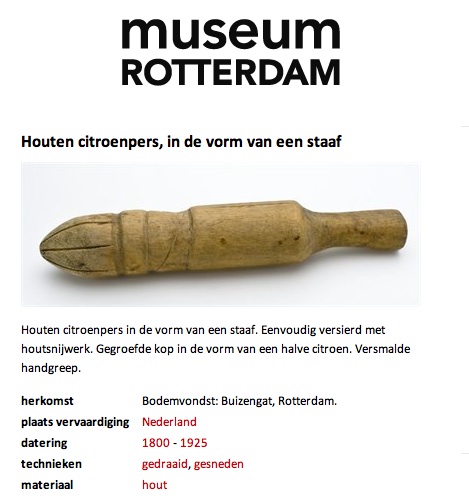 Nu is eten en koken iets dat we zo vaak doen dat er uiteraard ook een enorme industrie is die ons daar op alle terreinen met veel plezier bedient. Dat gaat van ingrediënten, tot (kook)boeken tot keukengerei. Klussers zeggen altijd dat goed gereedschap het halve werk is en in de keuken is het niet anders. Vandaag een klein stukje gereedschap en wel de houten citroenpers. Ik zag hem nog niet zo lang geleden in een televisieprogramma over koken en daarmee was het onhandig, handmatig knijpen in halve citroenen ook weer opgelost. In een beetje kookwinkel kan je hem kopen en in een handomdraai pers je met een paar korte bewegingen het sap uit de citroen (is uiteraard ook voor limoen handig). Klein hulpstuk maar heel handig. Hierboven zie je dat de houten citroenpers zelfs in het museum terug te vinden is (waar dit exemplaar geschat wordt op 85 jaar tot ruim twee eeuwen oud, sommige dingen overleven de tijd). Hieronder onze houten pers, recent gekocht maar nauwelijks afwijkend van het museumstuk.
