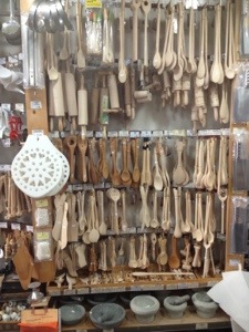 Echt belangrijk; de juiste pollepel. Want een grote pan soep heeft nu eenmaal een andere lepel nodig dan een wokpan of een steelpannetje met saus. De lepel mag niet verdwijnen en nog irritanter is een te grote pollepel die door de zwaartekracht over de rand van je kleine pannetje valt. Een complete keukeninrichting kent dus een hele set pollepels. Ik was laatst op de Albert Cuypmarkt in Amsterdam. Op nr. 150 vind je De Peperbol. In eerste instantie lijkt het een theewinkel (wat het òòk is), maar binnen in de winkel zie je allerlei keukengereedschap. Ik kon het niet laten en moest twee kleine pollepeltjes kopen; voor de sauspan. Eén met gat en één zonder. Kan je toch gelukkig van worden.