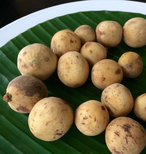 Zo op het eerste gezicht lijken het aardappelen. Maar het is fruit. Het zijn Lanzones die met name in Zuid-Azië groeien. Ze groeien in trossen en ze smaken bitterzoet. Een beetje tussen druif en grapefruit in. Heerlijk en ze pellen makkelijk.