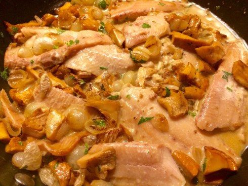 De zomer is voorbij. Dat heeft een voordeel: verse cantharellen. De lekkere nootachtige smaak laat zich goed combineren met gerookte forel. Met een uitje, wat room, bouillon en peterselie en je hebt een prachtig gerecht. Lekker met risotto of geroosterd brood.