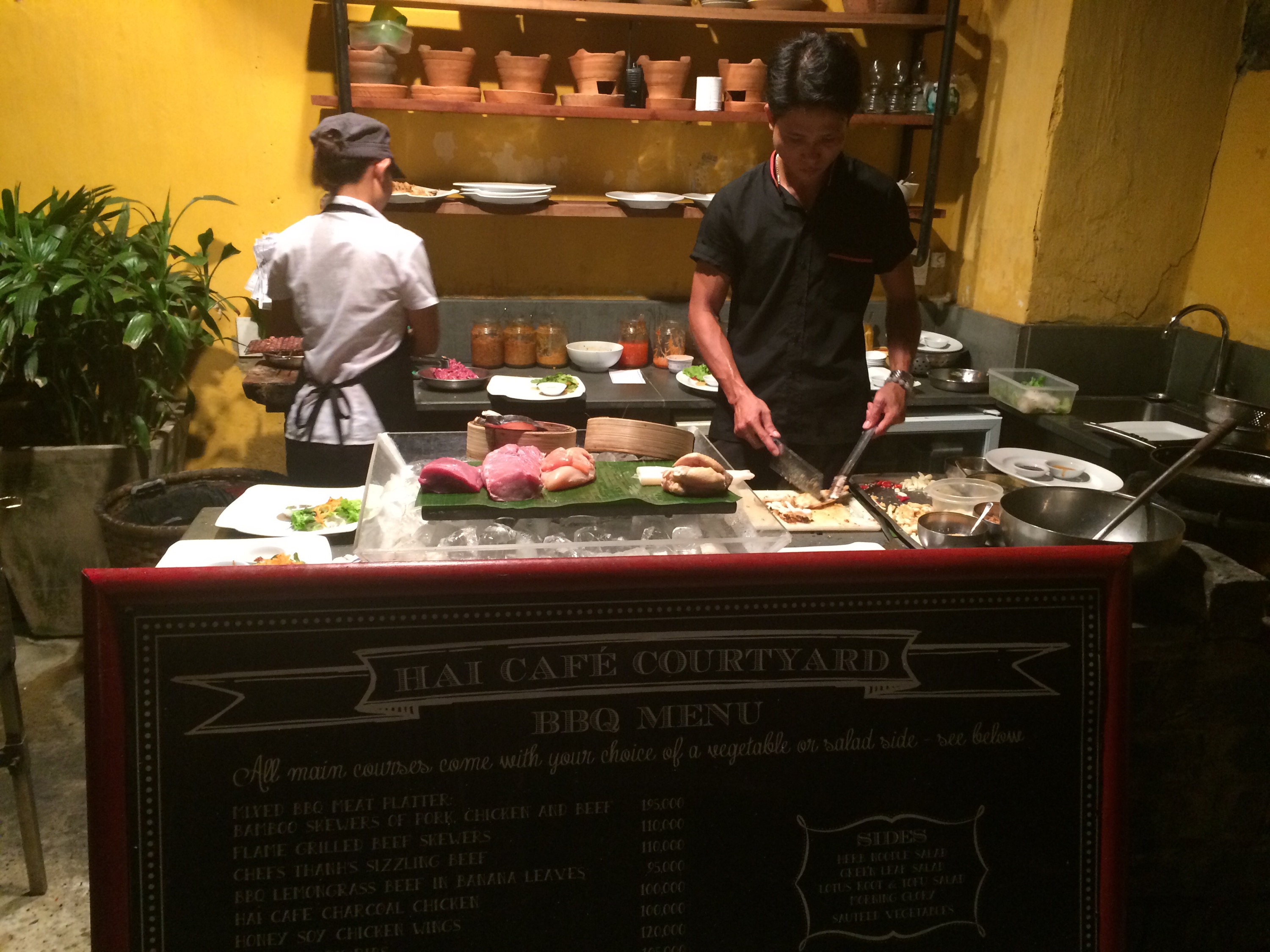 Eten in mediterrane sferen. Hai Café in Hoi An heeft een prachtige tuin waarin je zowel Westers als Vietnamees kan eten. Lekker druk en hektisch. Met een grote BBQ waar ze de heerlijkste beefskewers maken.