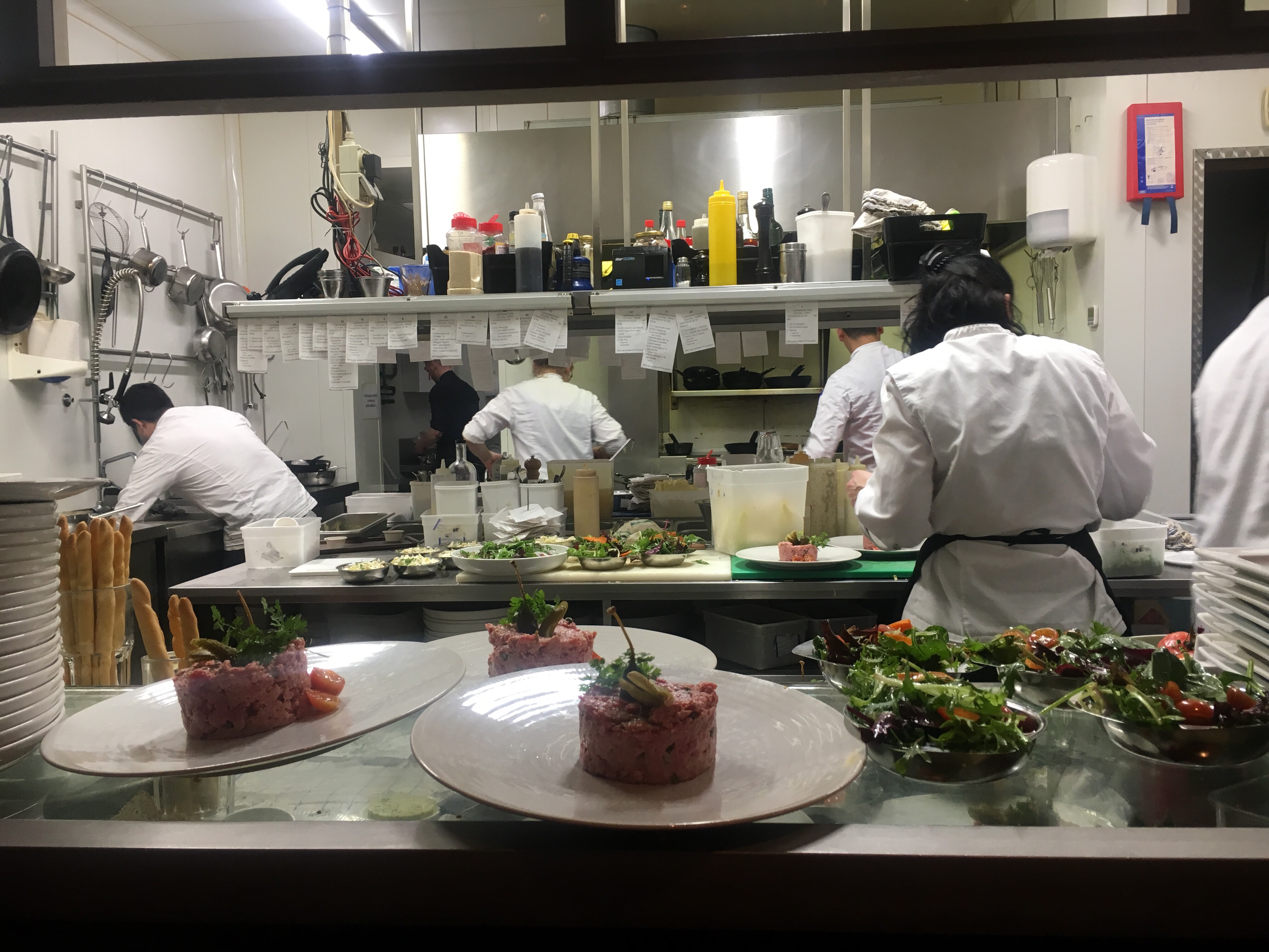 Je waant je eigenlijk in Parijs. Wat een prachtig restaurant. Oude glorie, goede bediening, klassieke kaart. Heerlijk. Vooraf gebakken kokkels met witte wijn en knoflook. Steak tartare als hoofdgerecht. Perfect bereid. De tabasco en worchestershiresauce apart. Friten erbij. Kon niet beter. Afgesloten met een coulant de chocolate. Zicht op de keuken. Perfecte discipline en rust, maar er werd enorm hard geweekt. Fijne avond was het in Bourla.