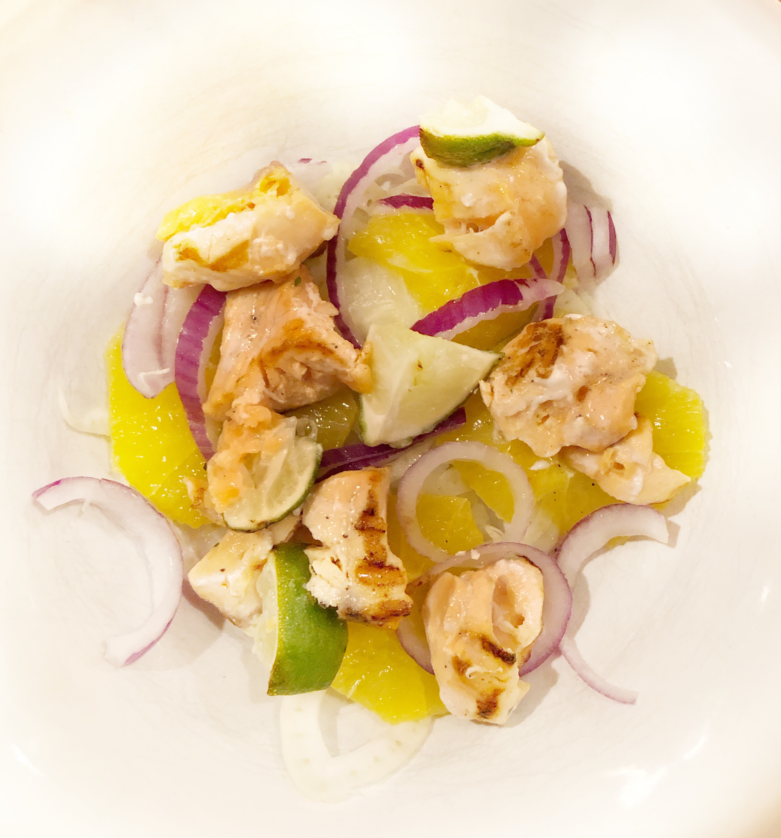Limoenzalm met venkel-sinaasappelsalade
