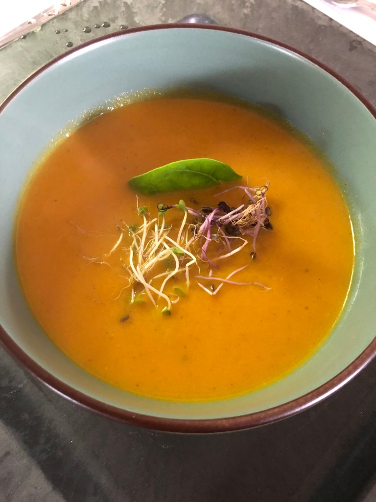 De winterpenen zijn nu volop verkrijgbaar en supergoedkoop. Lekker voor een herfstsoep. De Vadouvan-kruiden geven de wortels een pittig tintje. Vadouvan is een kruidenmengsel van ui, mosterdzaad, knoflook, kurkuma, kardemom, fenegriekzaad, komijnzaad, venkelzaad, kaneel, chilli, dragon, kruidnagel, laurier en rozenbloemblaadjes. Het is te koop in de supermarkt, onder andere van het merk Jonnie Boer. Ook lekker om een dip mee te maken. Maar deze keer dus door de soep.