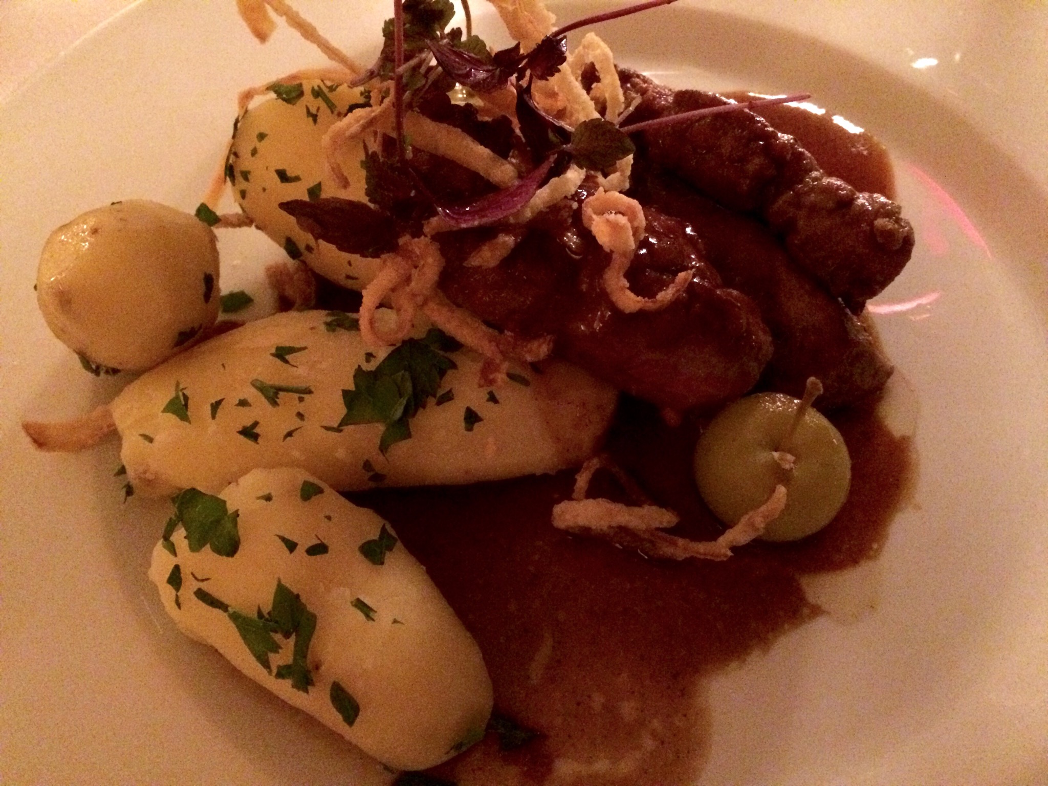 Kalflever met uien bij Mark Brandenburg in Berlijn.