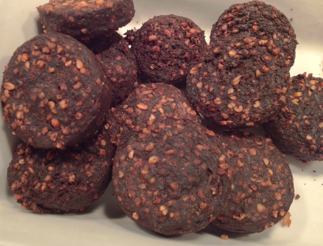 De bloedworst op de foto is Black Pudding uit Ierland. Het is daar een traditioneel onderdeel van het ontbijt. Ik heb het me goed laten smaken. Wat er eigelijk in zit? Reuzel (vet), spek, bloed, kruiden en granen. Echt gezond zal het niet zijn, maar wel lekker. Hieronder een filmpje over hoe je bloedworst maakt, in dit geval de Franse Boudin Noir.