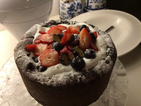 Verwarm de oven op 175 graden. Smelt de boter met 100 gram chocolade in een steelpan. Zet het vuur uit. Mix suiker, zout, vanillesuiker en 3 hele eieren tot het een luchtig geheel wordt. Mix vervolgens de amandelmeel en cacaopoeder er doorheen. Daarna voeg je de gesmolten boter met chocolade toe. Spatel dit goed door elkaar. Vet de bakvorm in met wat boter en bestrooi deze met paneermeel. Doe het beslag erin en bak de taart in 20 minuten gaar. Eet smakelijk.