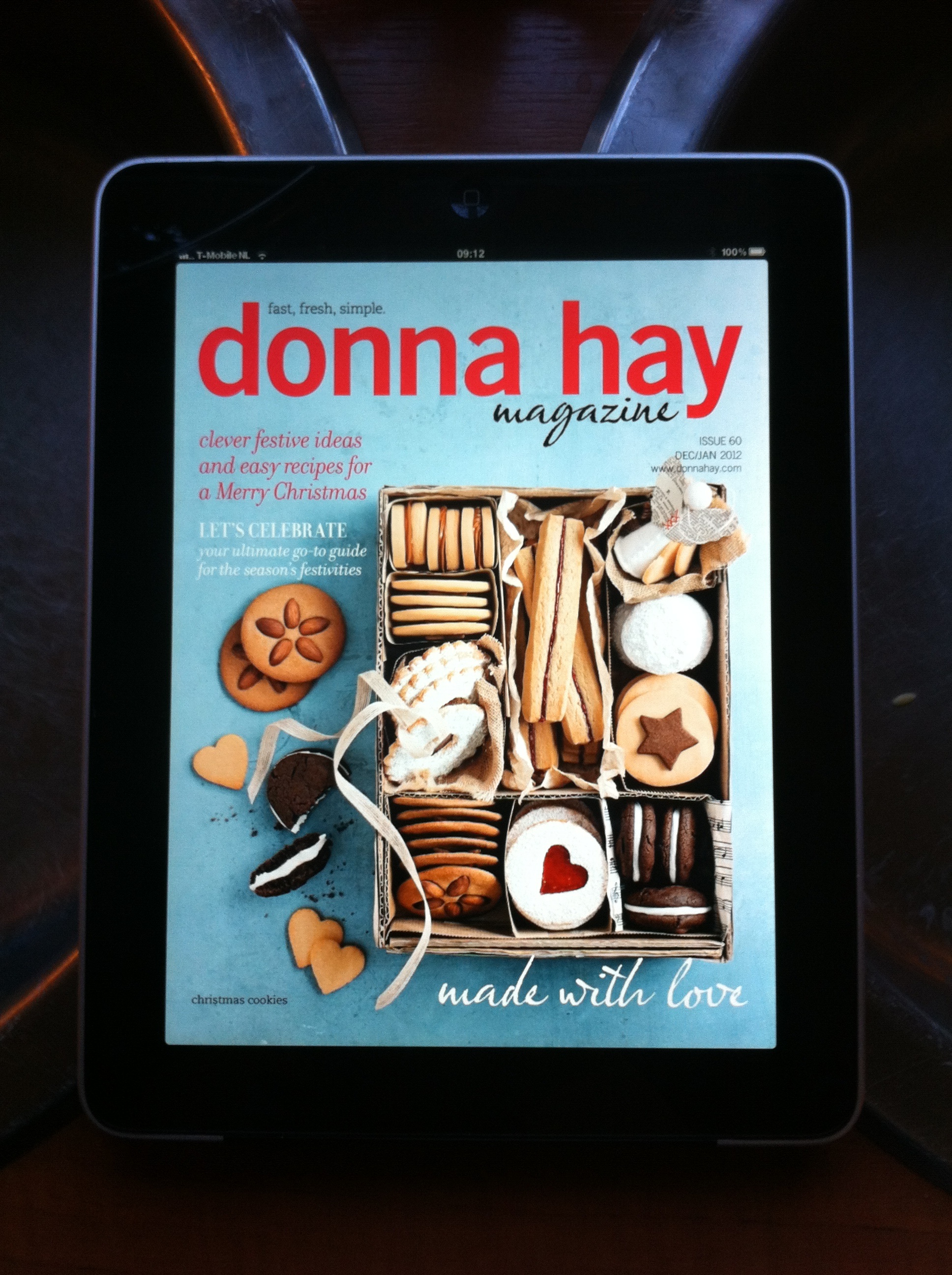 Donna Hay is voor velen onder ons een begrip. Ik keek net even in de boekenkast en telde 5 kookboeken van deze Australische schrijfster. Haar oeuvre beslaat overigens maar liefst 15 kookboeken. Naast schrijfster is zij ook ‘foodstyliste’ en eindredacteur van haar eigen blad. Ik schreef een paar weken geleden over de nieuwe app van Albert Heijn voor de iPad en waarna Femke (@smaakmaakster op Twitter en site/blog http://www.smaakmaakster.nl) ons tipte op de app van Donna Hay die net was uitgekomen ter gelegenheid van het 10-jarig bestaan van haar blad.