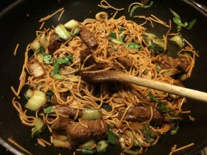 Met noedels kan je alle kanten op. In de soep, als nestje eerst koken en dan frituren of roerbakken. En dan heb je nog vele soorten noedels, waarvan ik de eiermie toch het meest smakelijk vind. 4 minuten koken, afspoelen met koud water en daarna verder verwerken. Je kan ze daarna knapperig bakken en met een sausje serveren, of gebruiken in een roerbakgerecht in de wok. Deze keer geef ik jullie het recept van een roerbakgerecht met ossenhaas, paksoi en Saké. Saké is een droge, stevige witte rijstwijn die een bijzondere Oosterse smaak aan je gerecht geeft. In Oosterse gerechten zie je vaak dat je sherry moet gebruiken, maar vervang dat eens door Saké, heerlijk: droger en minder zoet.