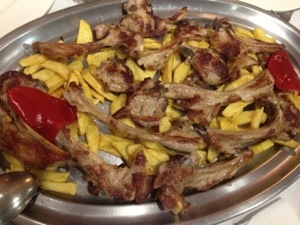 Dat inkoop de helft van de smaak bepaalt is maar weer eens bewezen. De andere helft is de bereiding en ook een beetje presentatie. Dit gerecht is zeer eenvoudig. Gewoon een grote schaal met zelfgemaakte frites en overheerlijke lamskoteletjes die op houtskool zijn gebakken. Niet vet, veel smaak. Gespot in Sidreria Casa Ataulfo in Gijon. Een prachtig restaurant, heel Spaans. Met grote vitrines waar de krab en kreeft je tegemoet lacht en de vis nog helder uit z’n ogen kijkt. En prachtig vlees in de droogkabine. Dit is echt genieten.