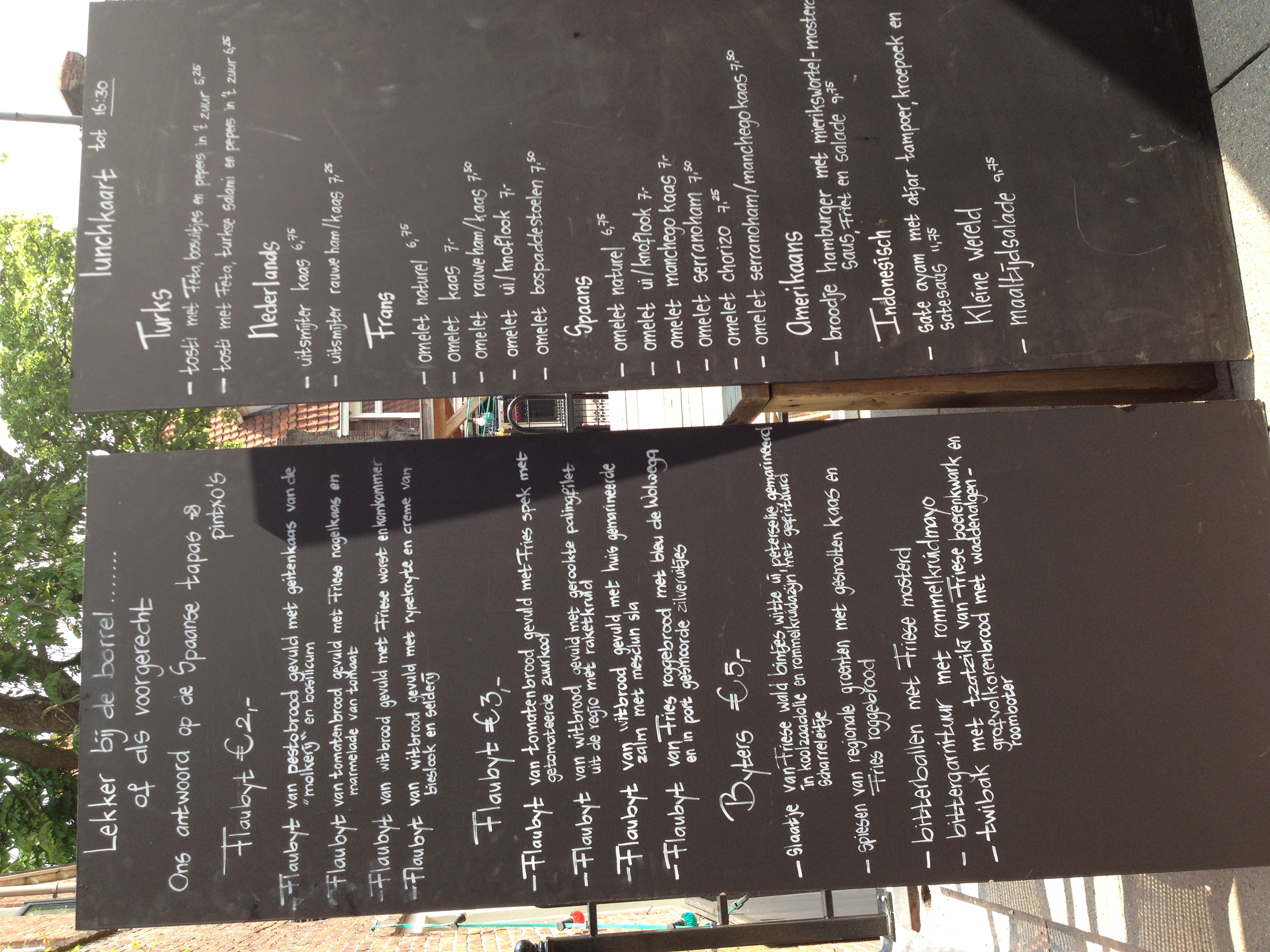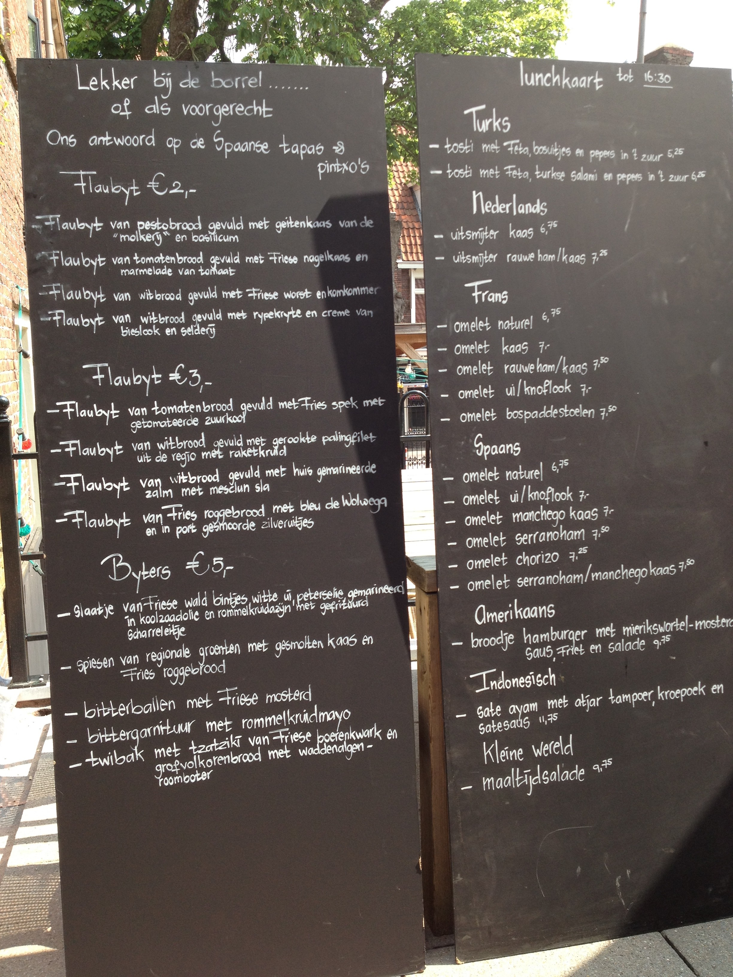 Na een 9-gangen amusediner bij Kaatje aan de Sluis in Blokzijl (heerlijk natuurlijk) reisden we de volgende dag door naar Leeuwarden. We besloten niet nog een avond voor de volle culinaire beleving te gaan en zochten een wat eenvoudiger restaurant. We kozen voor grand café De Hofdame. We zagen hier tenminste enkele niet-doorsnee gerechten op de kaart. We worden zo moedeloos van elke keer weer de carpaccio en gerookte zalm, tournedos en zeebaars. Kan lekker zijn hoor, maar verrassend is het meestal niet.