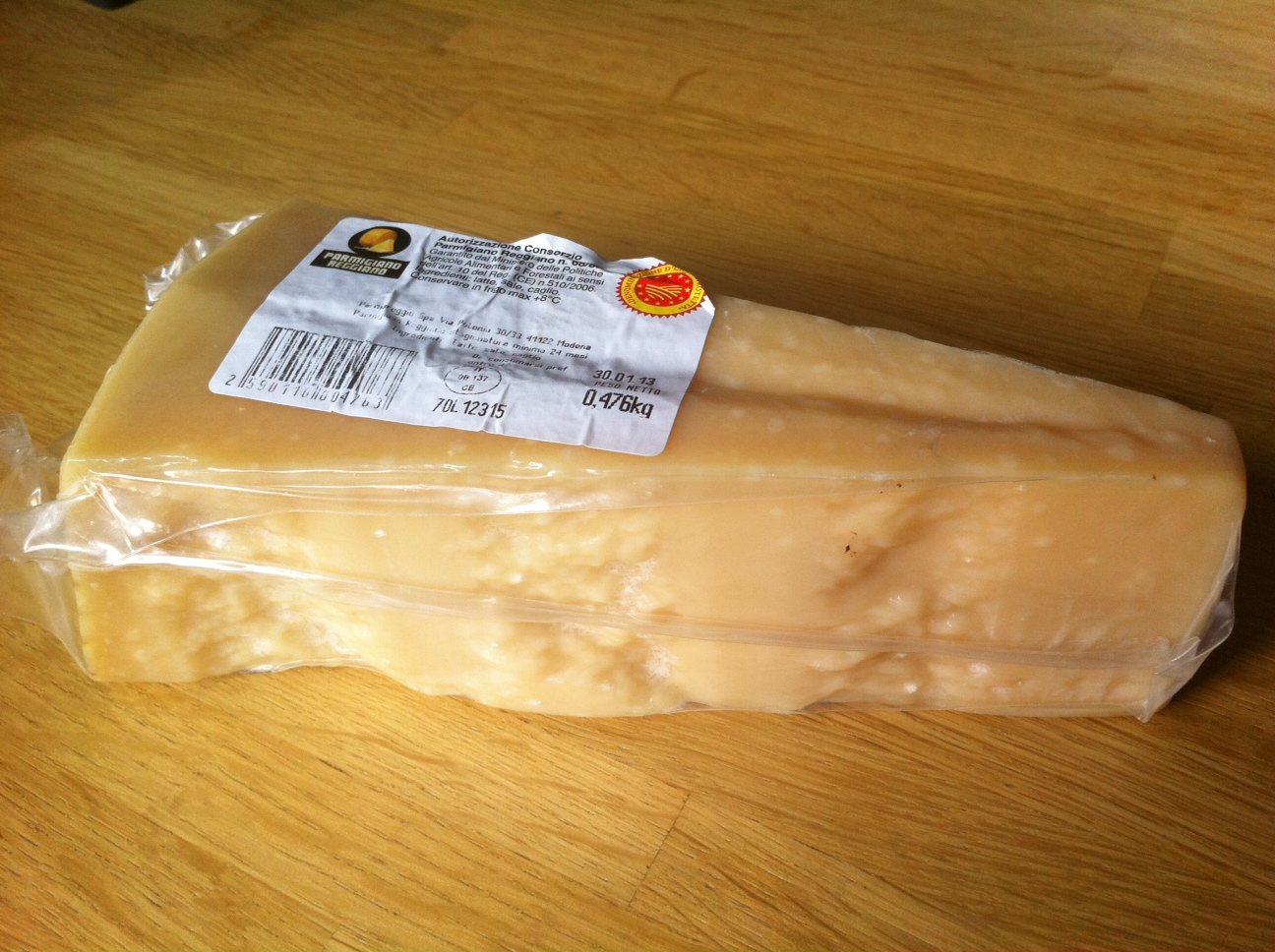 Een paar dagen geleden kregen we dit stuk Parmezaanse kaas cadeau. Parmezaan is een overbekende Italiaans kaas (officiële naam: Parmigiano Reggiano). Het bijzondere van deze kaas is dat hij ‘gered’ is door twee Nederlandse mannen die erachter kwamen dat 10% van de jaarlijkse productie Parmezaan (608.000 kazen) verloren dreigde te gaan. Op 20 mei en 29 mei van dit jaar werd de streek Bologna in Italië getroffen door twee aardbevingen. 44 kaasfabrieken raakten daardoor beschadigd. De ruim 600.000 kazen die eveneens beschadigd werden mochten (qua keurmerk) niet meer worden verkocht. De twee Nederlanders die dit hoorden besloten de stichting “Red een Kaas” op te richten en kochten 12.000 kilo kaas . Het geld wat hiermee wordt verdiend komt ten goede aan de gedupeerde kaasboeren. Via het internet werd een actie gelanceerd (site en Facebook, zie ook voor recepten) waar mensen konden intekenen voor een kilo Parmezaanse kaas. Enigszins beschadigd maar niet minder lekker! De 12.000 kilo waren in een mum van tijd verkocht en een tweede Red Een Kaas Event schijnt in aantocht te zijn.