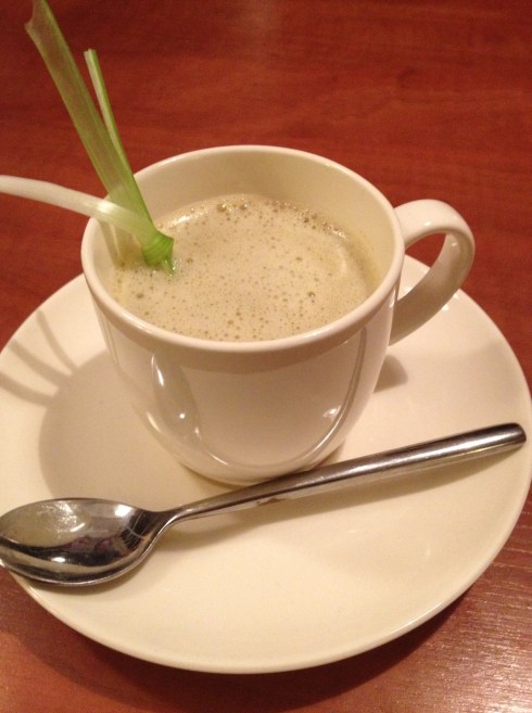 Uiteraard werd onze wens ingewilligd en korte tijd later stond er een koffiekopje met heerlijke soep. We detecteerden in ieder geval zuurkool.