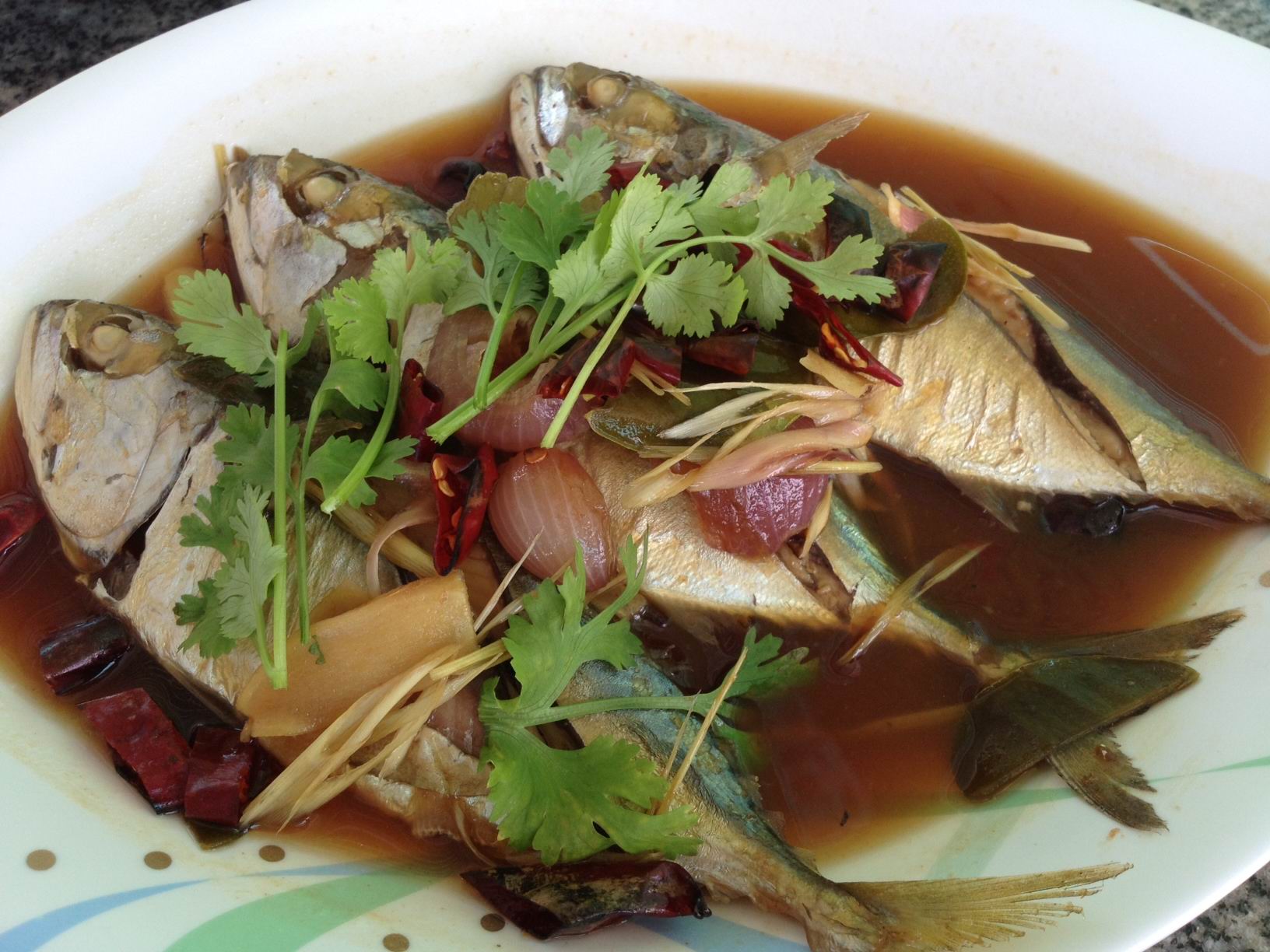 Vaak zie je dezelfde gerechten op de kaart, al smaken ze in ieder restaurant weer heel anders. Zo af en toe zie je ineens iets nieuws, zoals dit gerecht van makreel in Tamarinde bij restaurant Mee Karuna. Lekker Thais biertje erbij en wat gestoomde rijst. Helemaal goed. We hebben opgeschreven wat we konden detecteren in het gerecht en gaan het thuis eens proberen te maken. In hoofdlijnen kwam het neer op kleine makreel met limoenblad, gember, rode peper, citroengras, sjalot, koriander en een bouillon met tamarinde. Echt lekker.