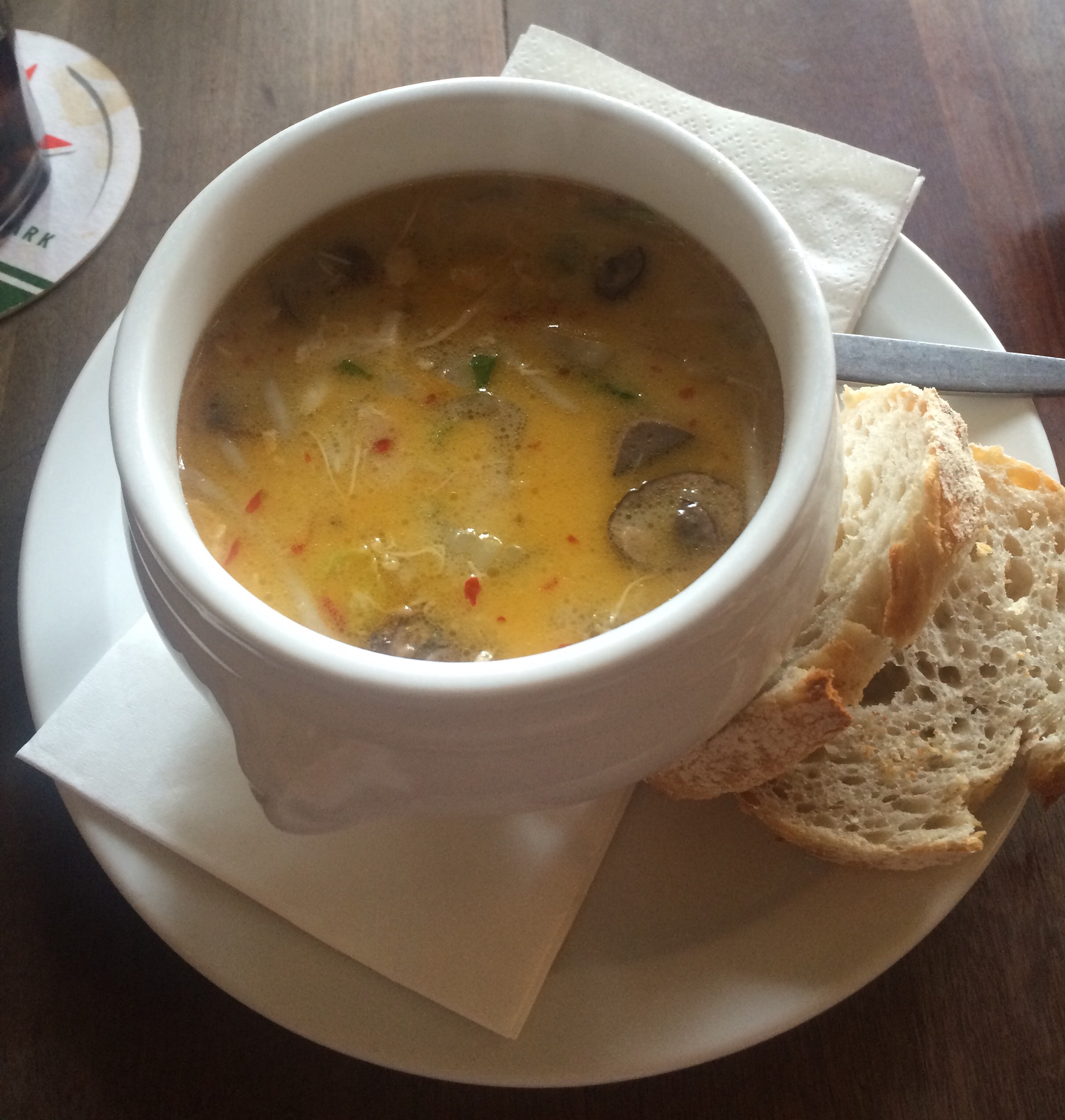 Je verwacht het niet. Op het kruispunt van alleen maar oerhollandse café’s met alleen kroketten en bitterballen op de kaart, is daar ineens een overheerlijke Tom Kah Kai soep bij De Prins. Perfect op smaak. Met twee stokbroodjes en in een oerhollandse soepkom waar je eigelijk gegratineerde uiensoep in verwacht. Dat dan weer wel. Maar toch…een echte aanrader!