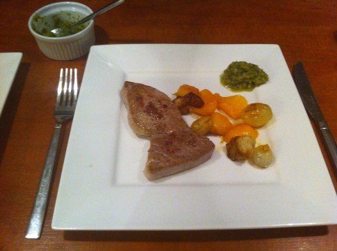24 julBonito tres salsas. Verse tonijn zo uit de Atlantische Oceaan, zo op je bord. In het Noorden van Spanje staan op iedere menukaart minstens twee varianten. Vaak zie je Bonito en Tomate: tonijn in tomatensaus. Of een salade met Bonito de Ventresca; tonijn uit blik, maar dan echt een malse moot, niet van die pulver. Lekker, maar deze was echt culi. Verse rosé gebakken tonijn in drie stukken: één met tomatenjam, één met zuring en één met gekonfijte ui. Veel smaak.