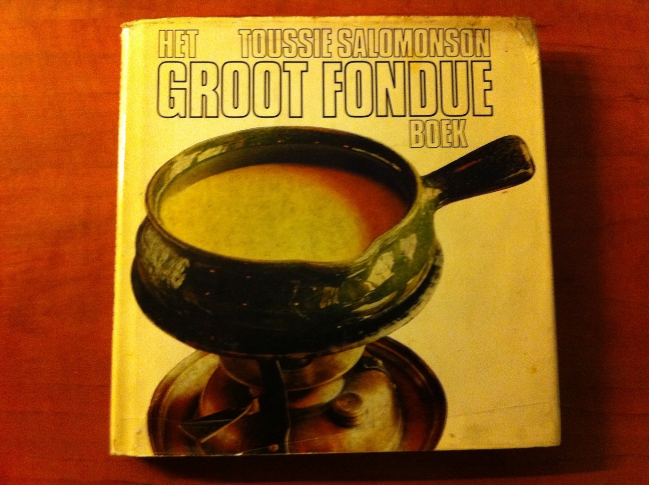 Op een van die avonden had ik hen bij ons thuis uitgenodigd. Uiteraard kon het ook deze avond niet uitblijven en het was kaasfondue wat de klok sloeg. Maar… niet zomaar een kaasfondue. Ik had namelijk lang geleden “Het Groot Fondue Boek” op de kop getikt wat  (als ik het nu weer eens opensla) uit een ver verleden stamt. Om een zin te citeren: “ ….en ondanks dat we in een gejaagde tijd leven – in een vloek en een zucht ons dagelijkse hapje naar binnen slaan – heeft de laatste jaren de kookkunst toch weer een bepaald gezicht gekregen …“. Prachtig en geschreven door Toussie Salomonson.