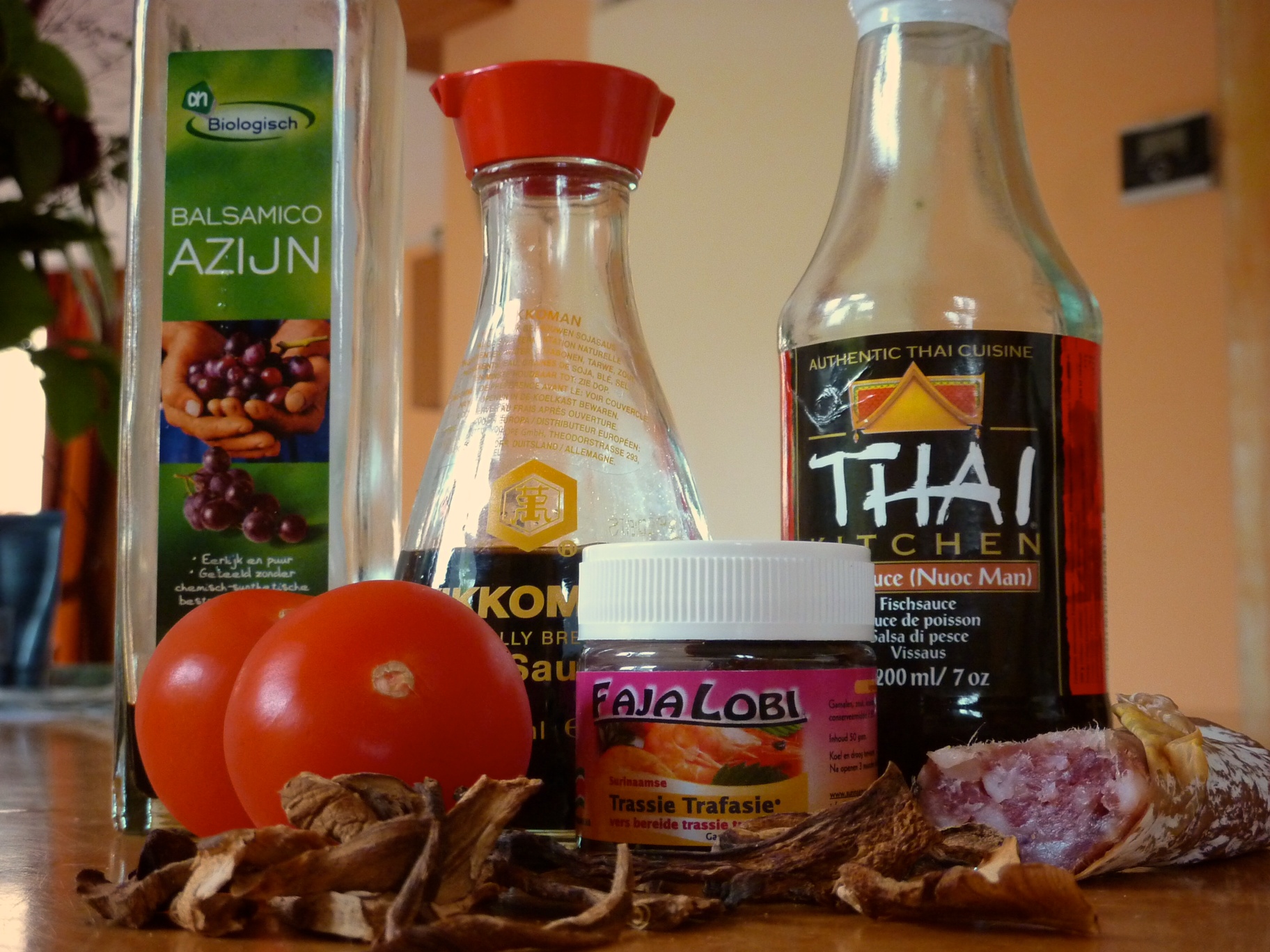 Wat hebben o.a.. sojasaus, balsamico, tomaten, gedroogde worst, vissaus, porcini en trassie met elkaar gemeen? Ze zitten allemaal bomvol met het geheimzinnige umami.